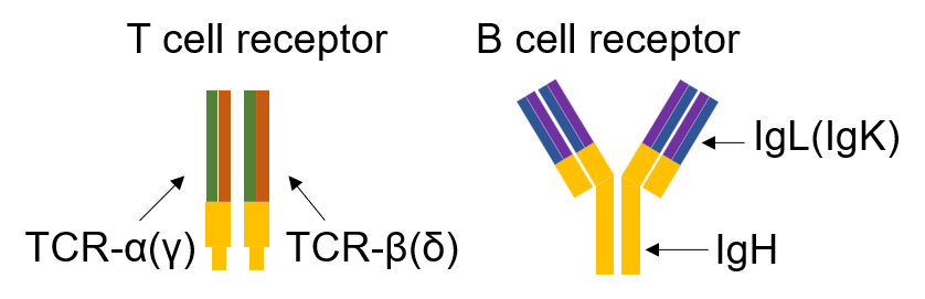 T cell receptor (TCR) is composed of two different protein chains. The vast majority of T cells express TCRs composed of α (alpha) and β (beta) chains while a small subset expresses TCR composed of γ (gamma) and δ (delta) chains. The sequence encoded by the V(D)J junction is called complementarity determining region 3 or CDR3. This sequence has the highest variability in both alpha and beta chains and determines the ability of a T cell to recognize an antigen peptide presented by the MHC molecule.
